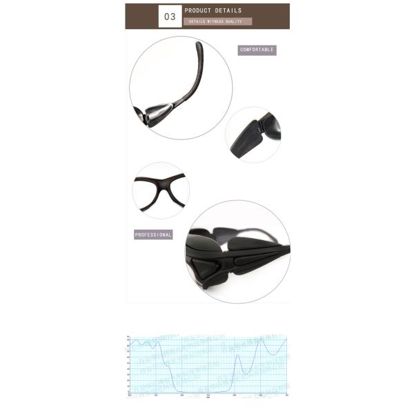 Laser safey goggles are special glasses that can prevent or reduce laser damage to human eyes, it is an efficient and safety goggles, it is suitable for many lasers and laser pens, This series of safety glasses is comfortable and beautiful, is is safe and reliable . its optical safety performance fully meets the laser safety goggles and has a reflective absorption type, it can fully protect the laser and strong light from a specific band, it is suitable for a variety of laser equipment.
